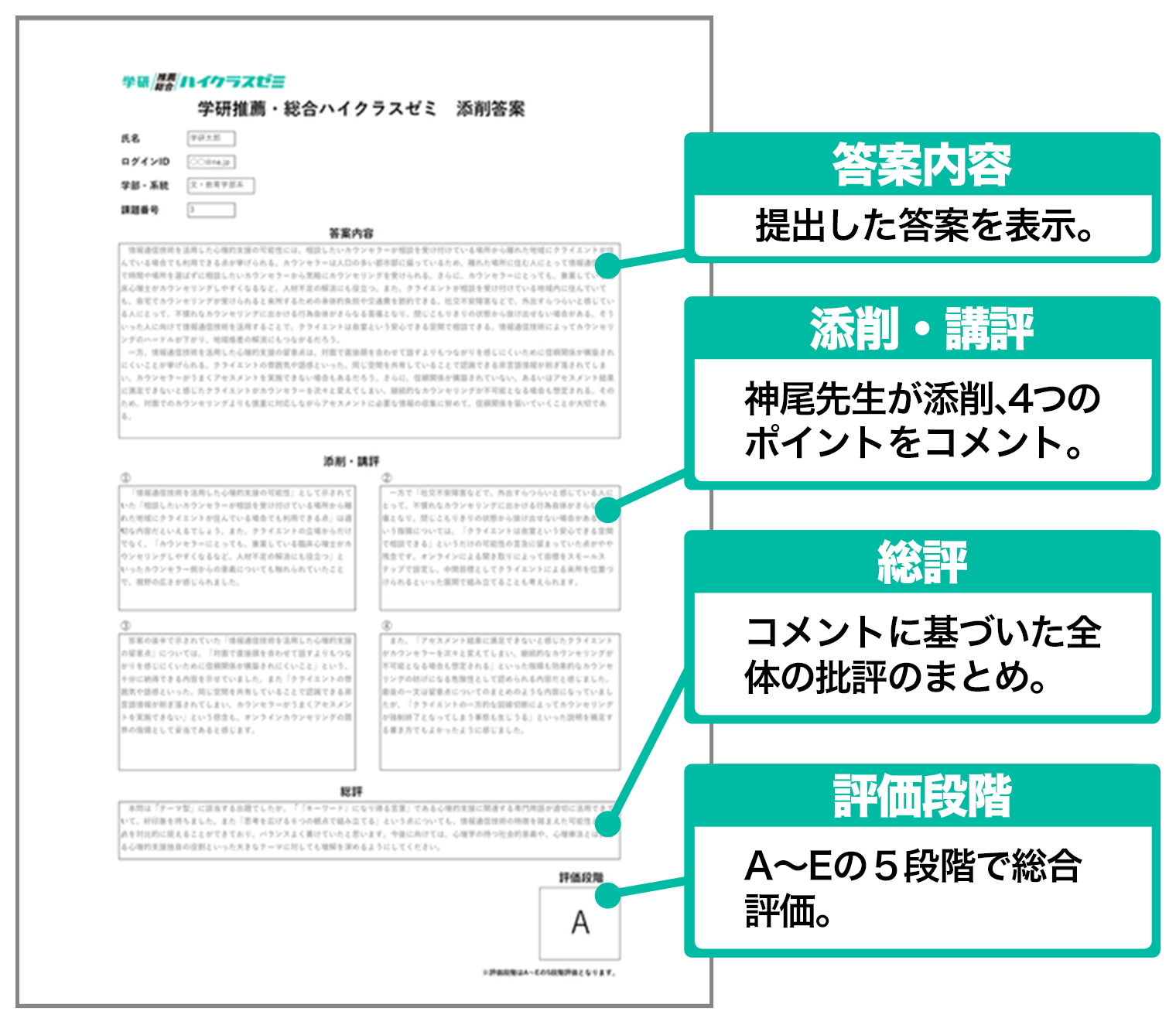 学研推薦・総合ハイクラスゼミでは講座により添削指導もご用意。映像講義の視聴による質の高いインプット学習に対し、課題演習によるアウトプット学習を添削指導でより強化できます。
