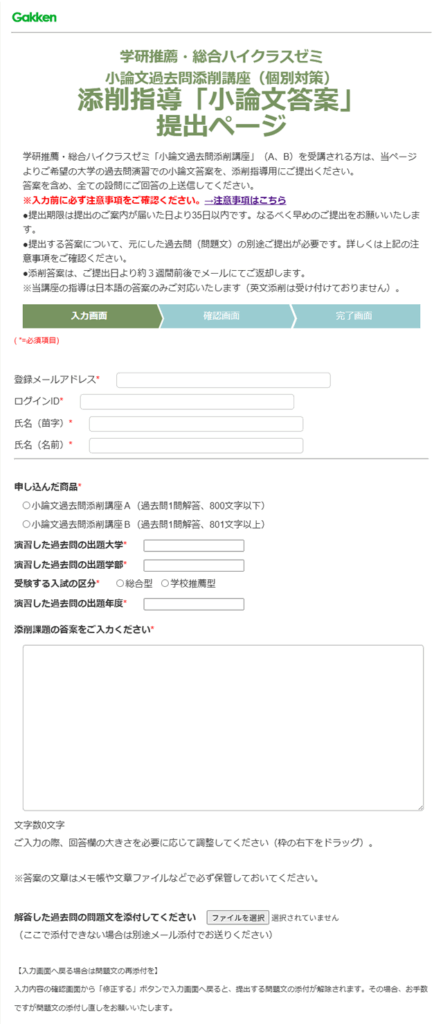 小論文過去問添削講座A、講座B