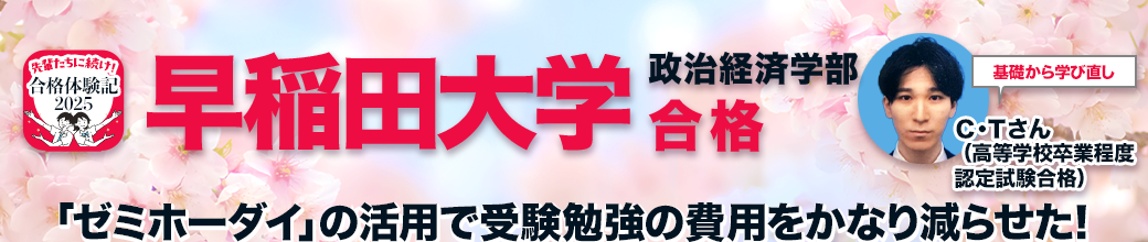 ゼミホーダイを使用したということもあり、予備校に通っていたときと比べて費用が大幅におさえられたこともよかったです。