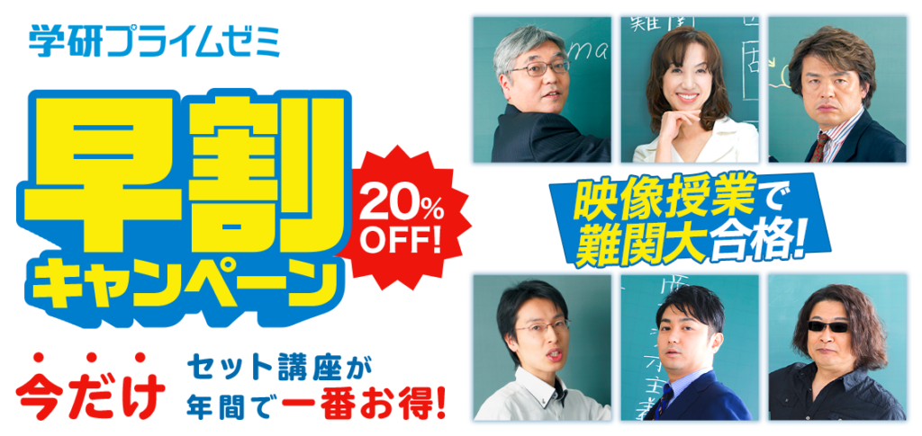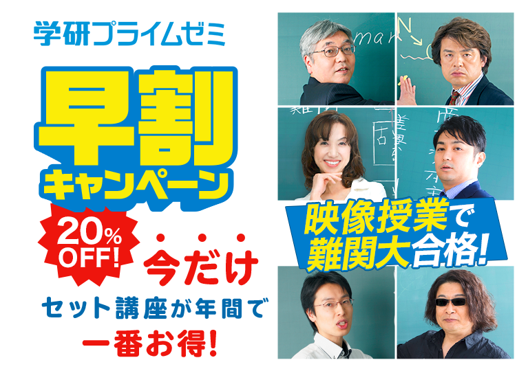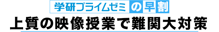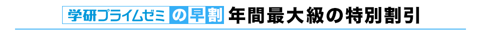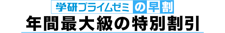 学研プライムゼミでは、難関大をめざす受験生の皆さんを応援します。 そこで今回は、入試本番までの受験対策のはじまりに、 合格へのスタートダッシュをサポートするお得な「早割キャンペーン」を実施します。 ぜひこの機会に、より上の実力を目指してください。