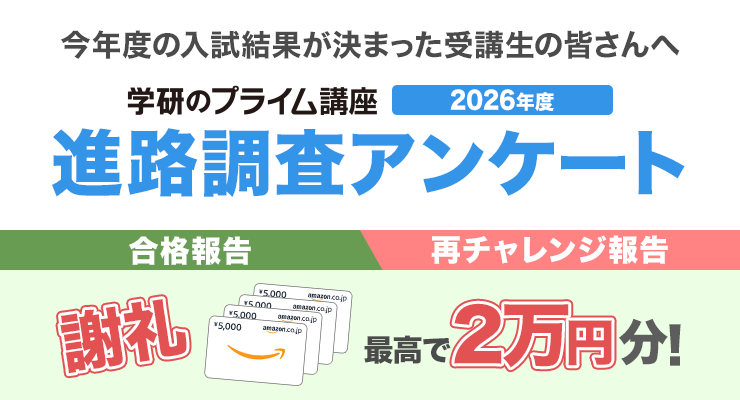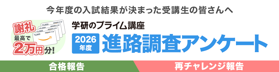 今年大学入試を受験された受講生の皆さん、学研のプライム講座の講座をご利用いただき、誠にありがとうございました。